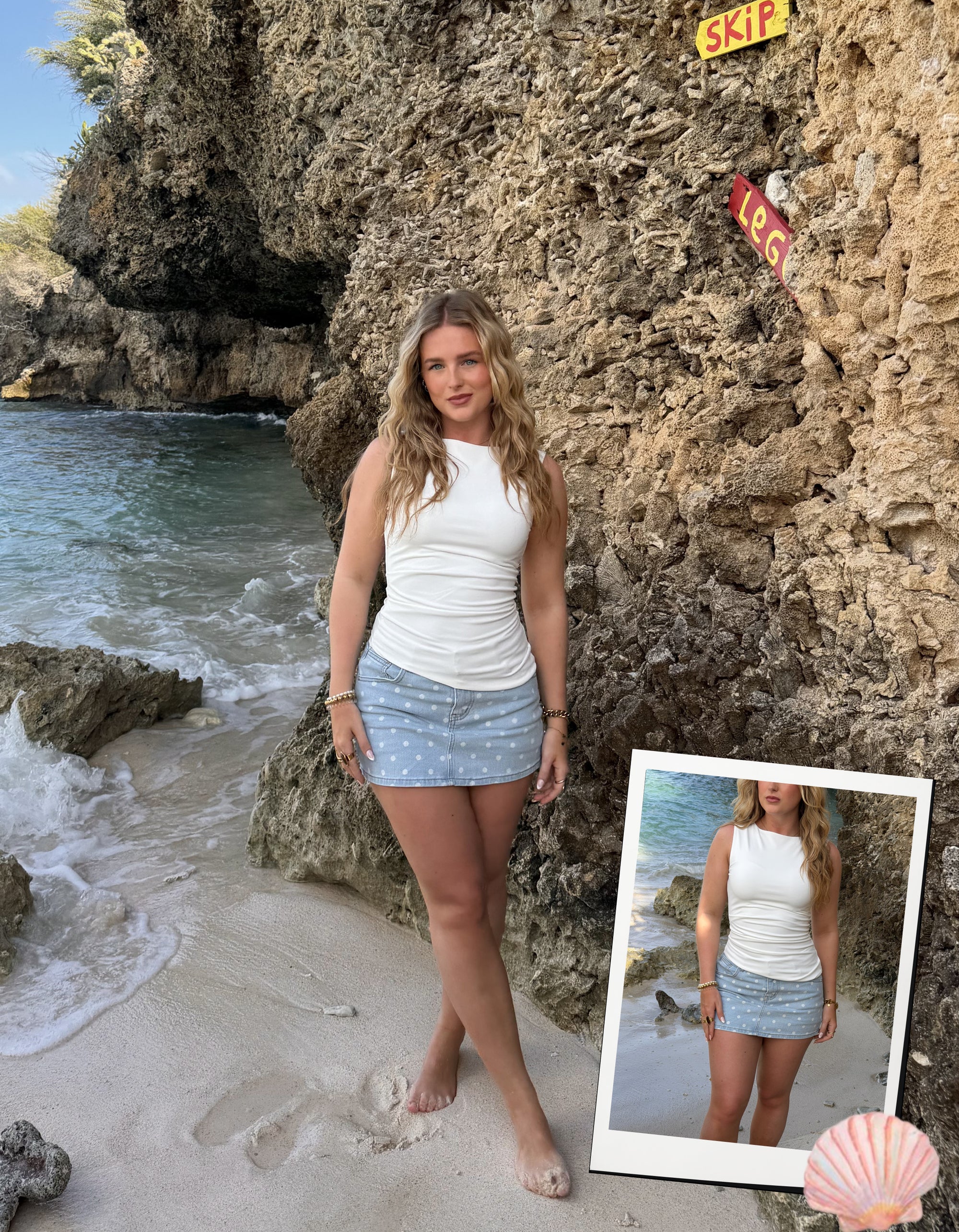 Polka Dot Denim Skort